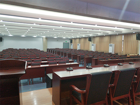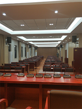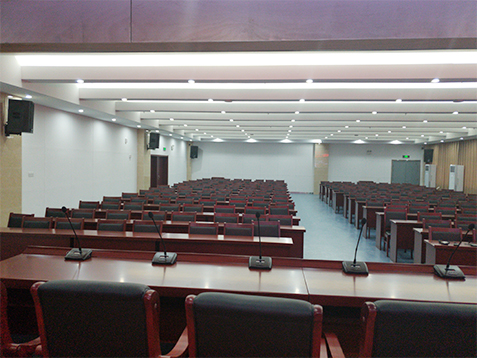 專業擴聲系統簡單來說就是把聲音信號放大,主要由聲源、音頻處理設備、功放及揚聲器系統組成。通過計算會議室的音響場地系數進行設計,保證會議室每個角落的聲場聽覺均勻,音響效果達到語言清晰、無失真、聲場分布均勻。